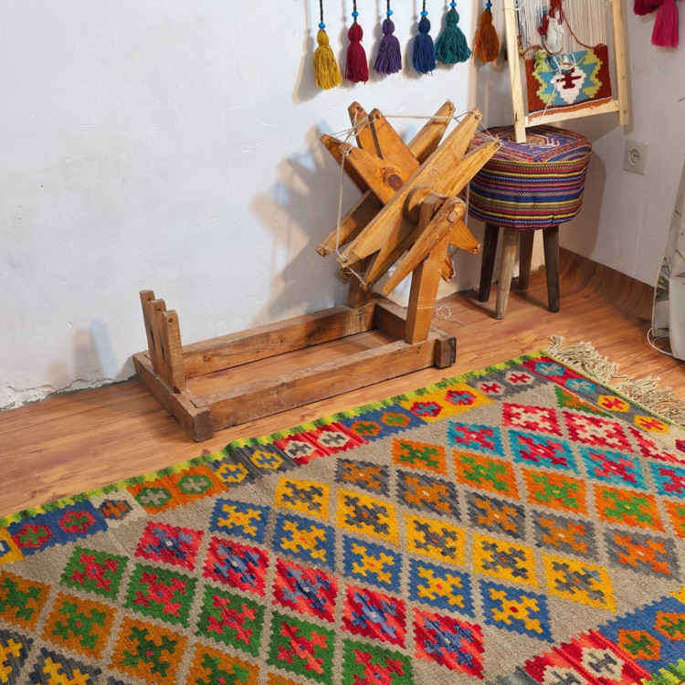 گلیم دستبافت قشقایی با رنگرزی گیاهی کد ۰۲۲